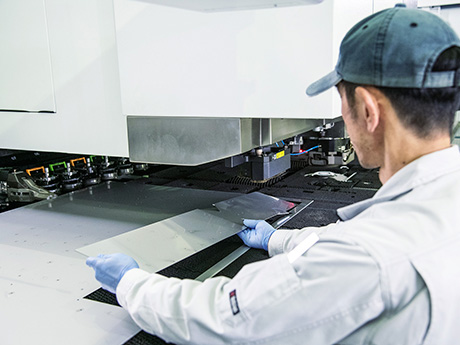 本社からクルマで数分の場所に位置する和コーポレーションの南陽工場。板金や溶接を担う工場で、工場全体を牽引しているのが、二人のマイスターです。工場で主に行われている加工は、精密板金、製缶、溶接、曲げ加工など。工作機械や食品製造装置、医療機器の部品などを製造しています。