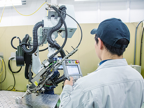 曲げ工程がメインの仕事でしたが、最近はロボット溶接も行うようになりました。ロボット溶接は、まだ実績が少ないので、製品が精度良く仕上がると喜びを感じます。ロボット溶接では複雑な形状でも量産できるので、仕事を増やしていきたいですね。
