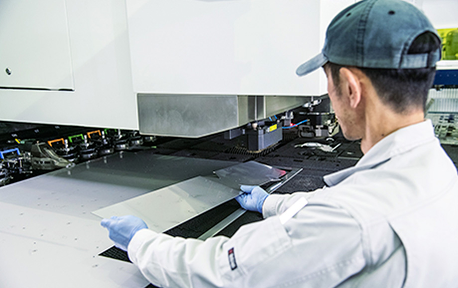 和コーポレーションの強みのひとつである「一括受注」。切削や板金などの加工、機械の組立をはじめ、設計から機械制御のプログラム、納品まで一括で受注しています。